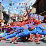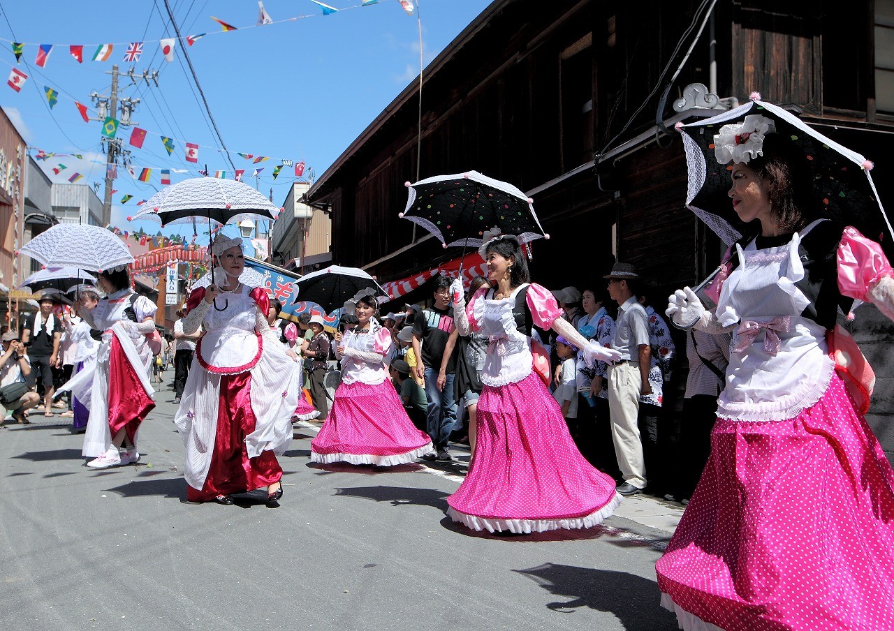 例年、100組前後の人達が仮装コンクールにエントリーし、思い思いの趣向を凝らし、コンクールに挑みます。仮装に歴史は古く大正時代あたりから始まり、現在の形になったのは昭和30年大後半と言われています。仮装コンクールには、町内外を問わず一般参加も大歓迎です。